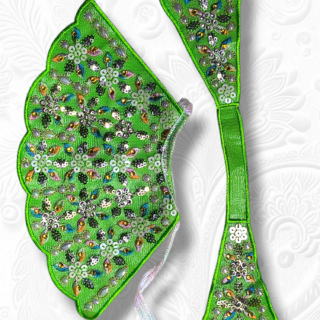 Heavy embroidery Lahnga Patka Poshak for Mata rani green