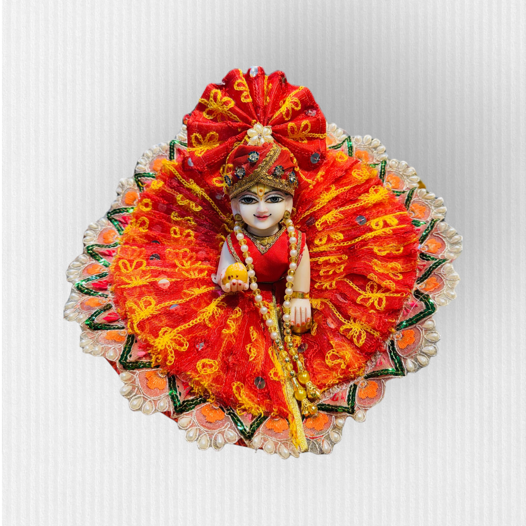 Laddu Gopal Heavy Embroidery With Stone and Thread Orange