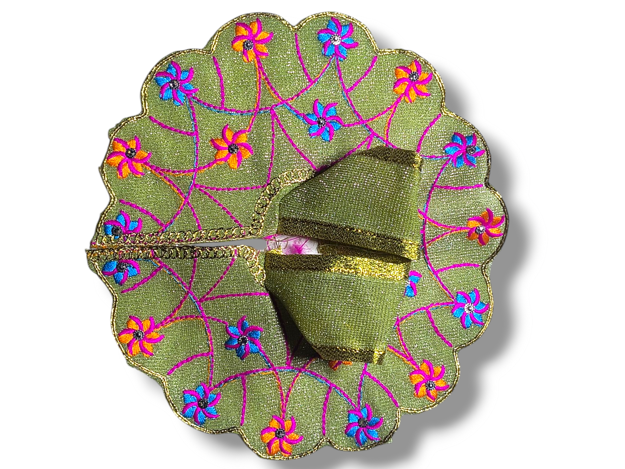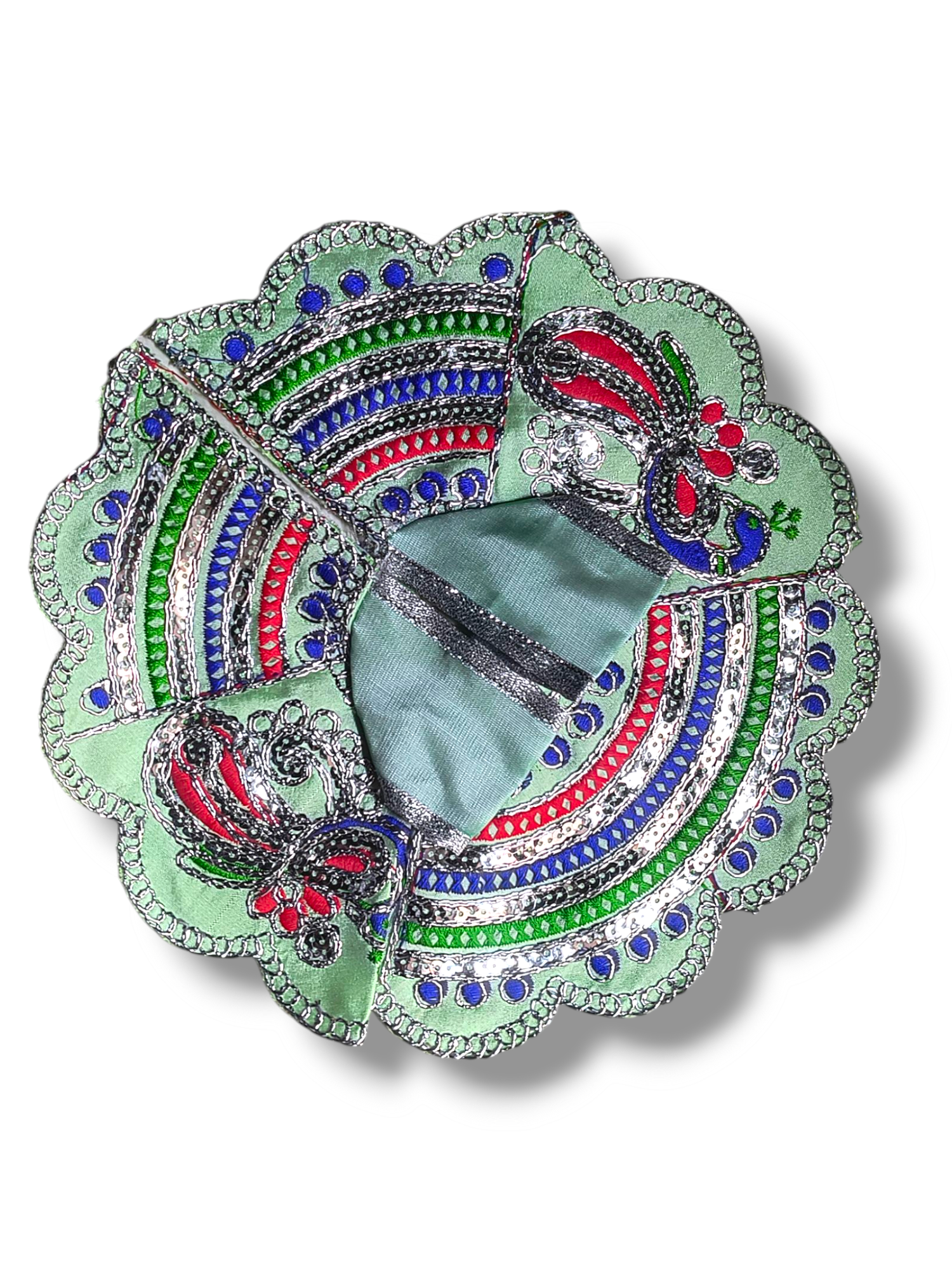 Start From ₹89.00Select options This product has multiple variants. The options may be chosen on the product pageDress your Laddu Gopal Ji in divine elegance with this beautifully embroidered kadai poshak. Crafted from premium silk, it features intricate threadwork with golden and silver accents, adding a regal touch to your deity’s attire. Available in vibrant colors, this poshak is perfect for festive occasions or daily worship, blending tradition with grace.