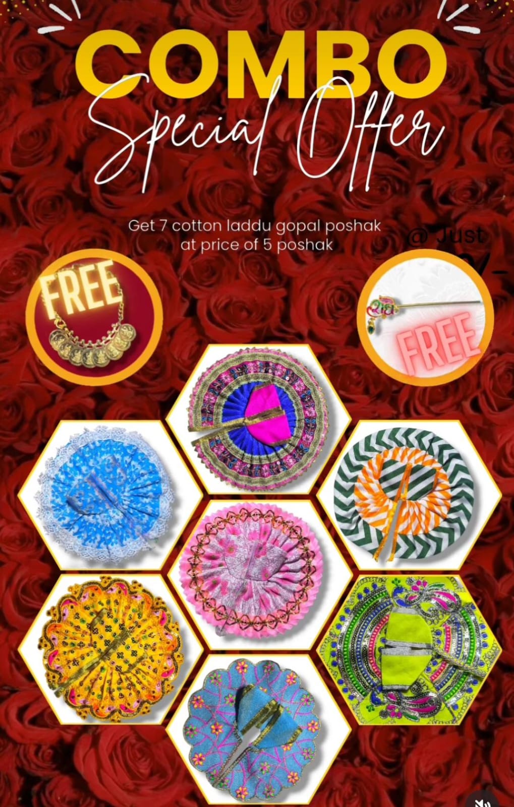 Dress your beloved Laddu Gopal in divine elegance with this Combo Pack of 7 Poshaks – a perfect blend of tradition, comfort, and vibrant design. Made from soft, breathable cotton, each poshak is lovingly handcrafted to ensure your deity feels as special as they are to you.