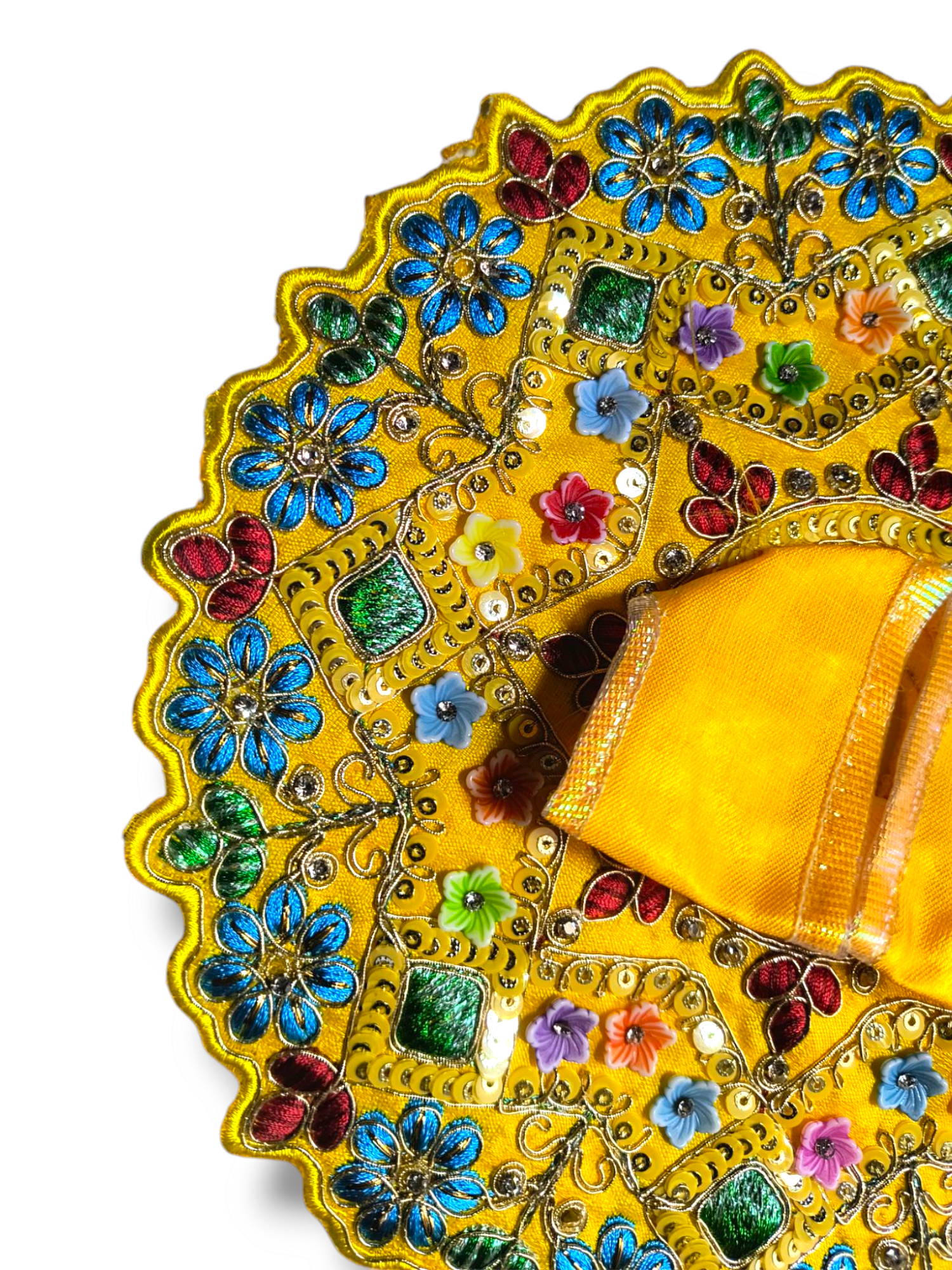 Vibrant Color Options: Available in various colors like royal blue, maroon, gold, and green, each representing different aspects of Lord Krishna’s divinity.