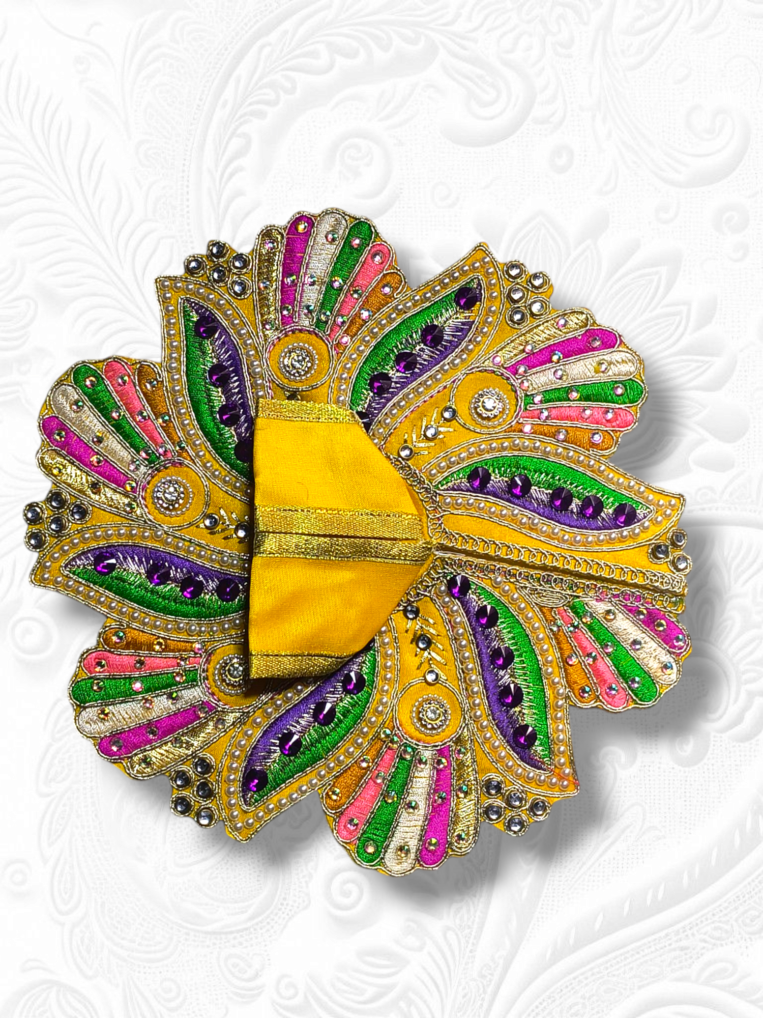 Ideal for Special Occasions & Festivals: This poshak is perfect for festive seasons, religious ceremonies, or as a thoughtful gift to a devotee of Lord Krishna, adding a touch of grandeur and devotion.