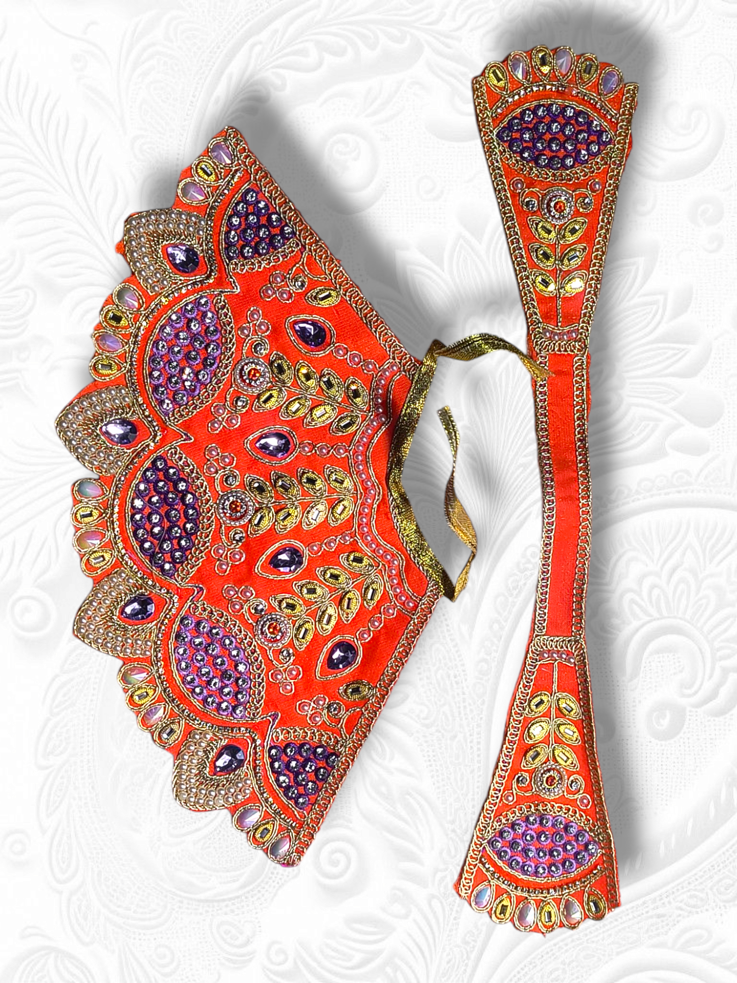 • Traditional Embroidery & Detailing: The poshak is adorned with traditional, intricate embroidery using golden, silver, and vibrant multicolored threads. Patterns such as lotus flowers, peacocks, and divine motifs symbolize beauty, spirituality, and prosperity. Every stitch has been crafted with precision, ensuring a majestic and sacred appearance.