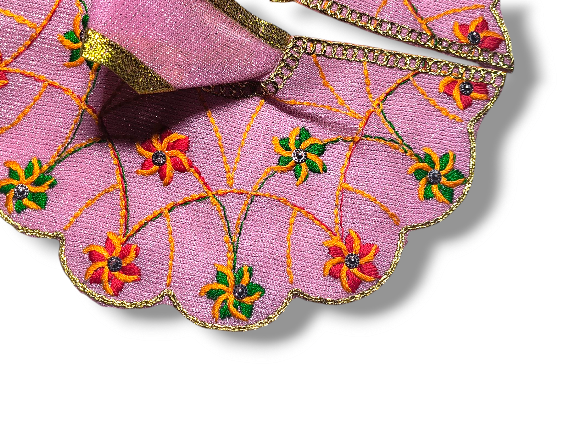 Dress your Laddu Gopal in style with this Summer Special Light Weight Embroidery Poshak, featuring intricate embroidery and a Jimmy Choo-inspired design. Made from breathable, lightweight fabric, it’s perfect for warm weather, festivals, and daily worship, offering both elegance and comfort.